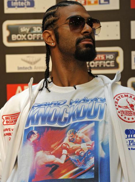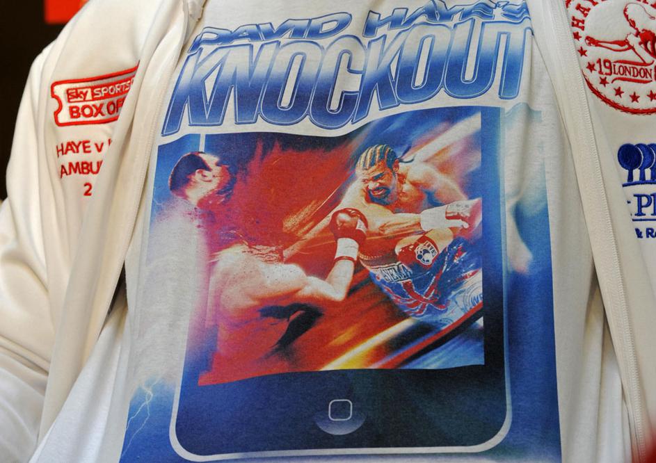 david hayeHaye je na novinarsko konferenco prišel z majico, na kateri nokautira Klička. Bo tako tudi v soboto? Reuters