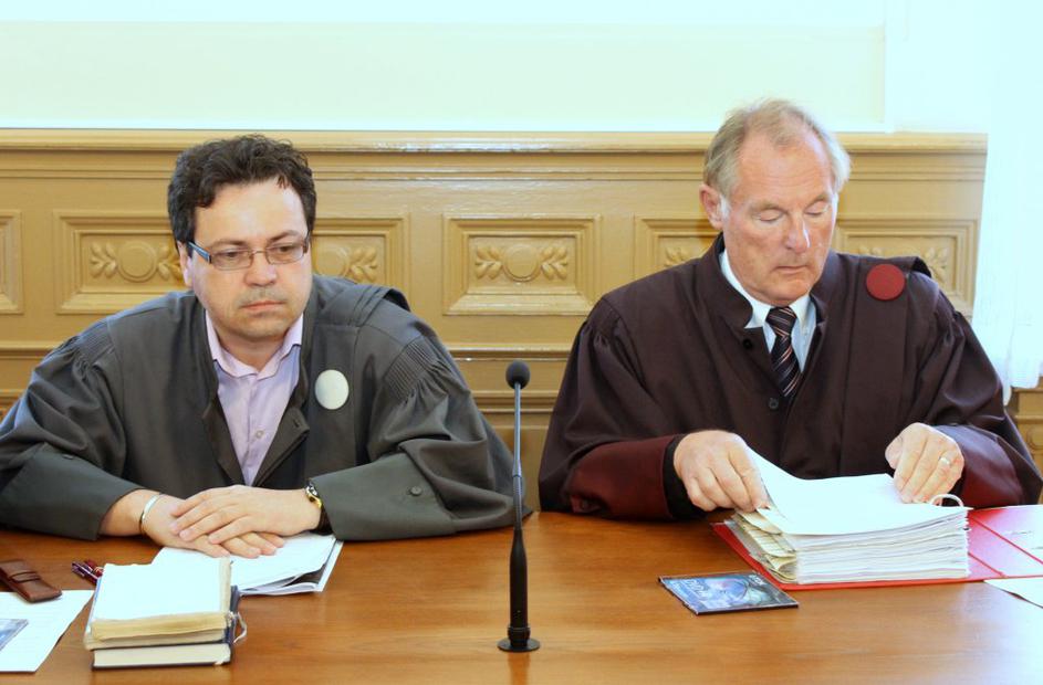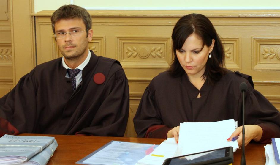 Zdravnika, ki sta se znašla na zatožni klopi, v spremstvu odvetnikov.