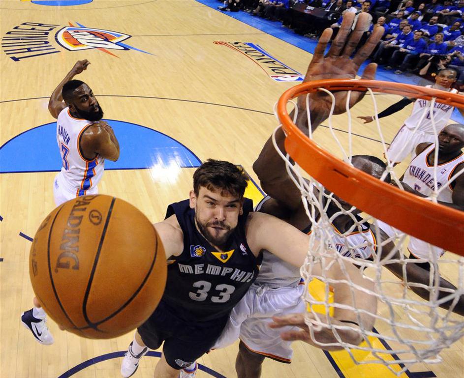 Marc Gasol in Serge IbakaMarc Gasol (26 let, Memphis Grizzlies) – v paru z Zachom Randolphom se je izkazal v končnici in Grizliji bodo naredili vse, da ga zadržijo (11,7 točke in 7 skokov). EPA