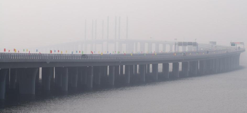 Most v zalivu Jiaozhou povezuje pristaniško mesto Quingdao z mestom Huangdao na drugi strani zaliva. Reuters