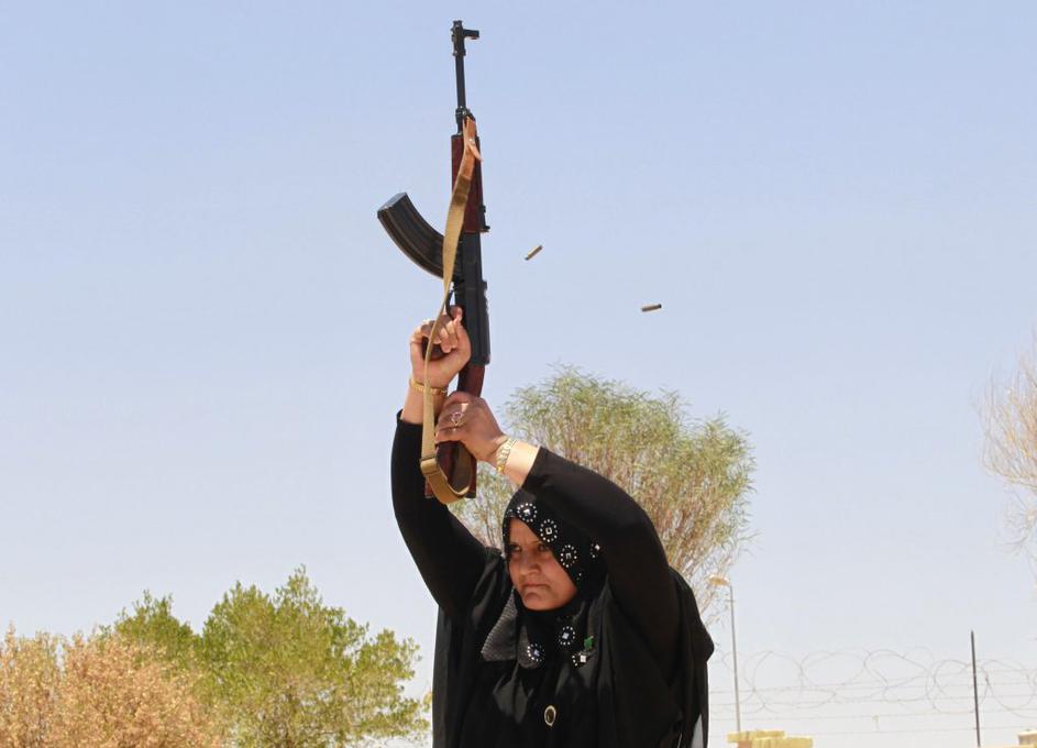FotografijeZa libijskega vrhovnega polkovnika Moamerja Gadafija so za orožje prijele tudi ženske. Reuters