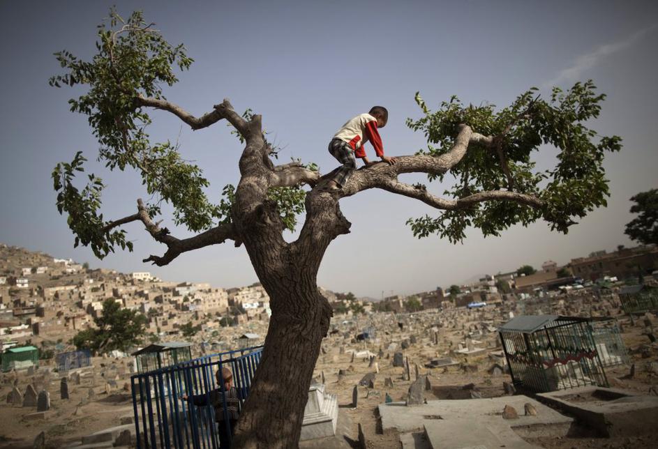 FotografijeOtrokom po svetu je skupno plezanje po drevesih – tudi če to raste na pokopališču v nemirnem Kabulu. Reuters