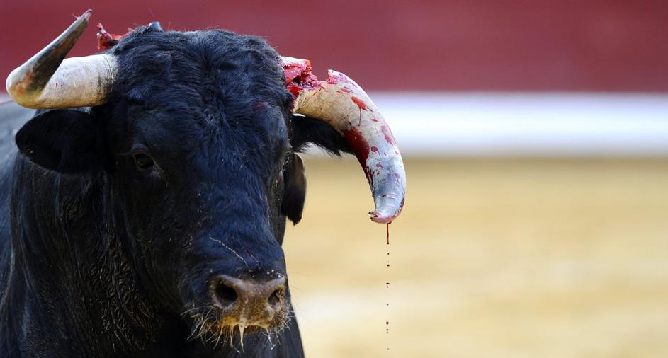FotografijeBik z zlomljenim rogom med bikoborbo v Burgosu. Reuters