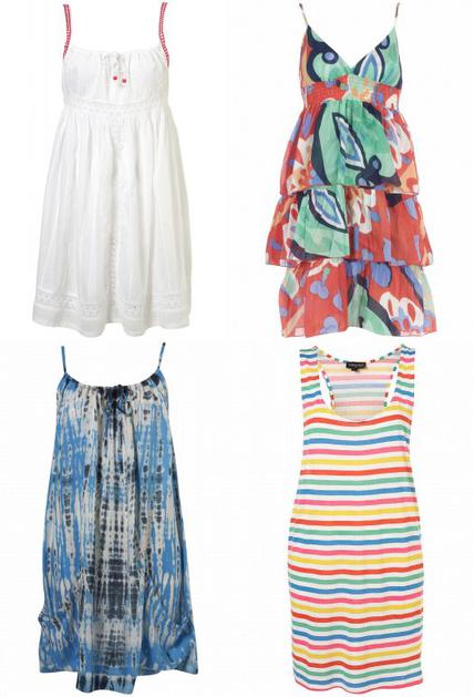 oblekeMini. Z mini obleko, belo, pisano ali takšno z vzorcem, nikoli ne morete zgrešiti. Prava izbira za vse, ki se s plaže radi odpravite na potep po obalnem mestu. Topshop, Dorothy Perkins