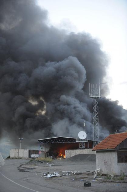 Požar na mejnem prehodu Jarinje.