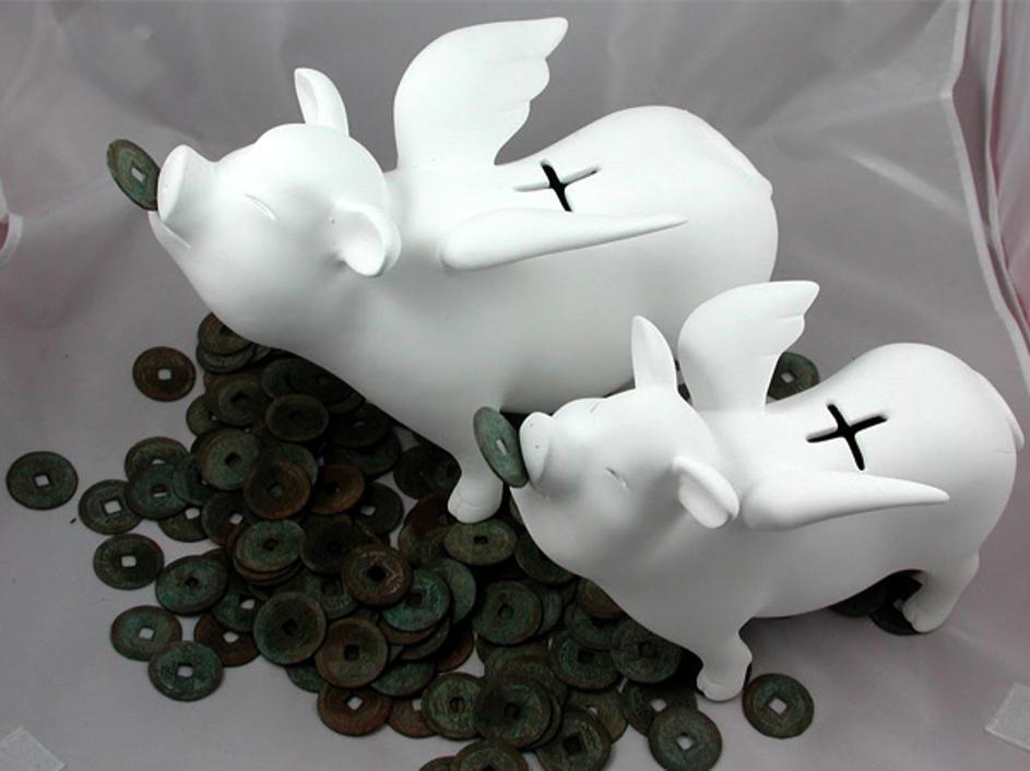 Hranilnik Flying Piggy Bank. Oblikovanje: Galerie Brigitte.