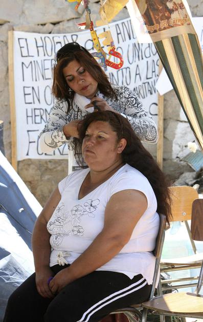 Družine ujetih rudarjev so pred rudnikom postavile svoj tabor.