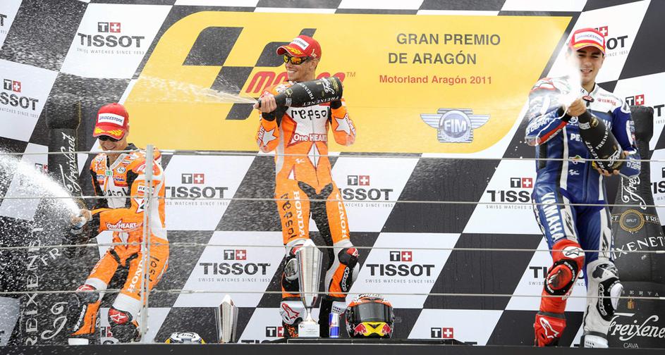 Casey Stoner VN Aragonije dirkaStoner ima v skupnem seštevku 44 točk prednosti pred Lorenzom in je vse bližje svojemu drugemu naslovu svetovnega prvaka. Reuters
