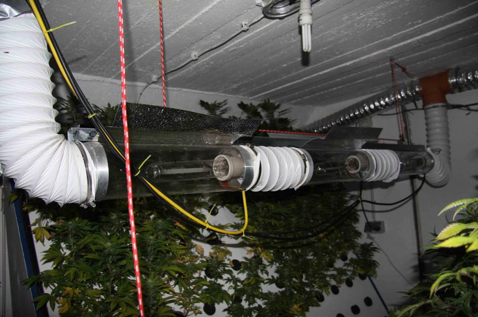 Možje v modrem so mu zasegli 20 svežih rastlin in okoli tri kilograme suhih rastlin konoplje ter pripomočke za gojenje.