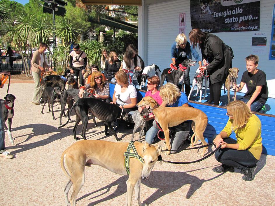 Srečanje skupine posvojiteljev hrtov v Portorožu.