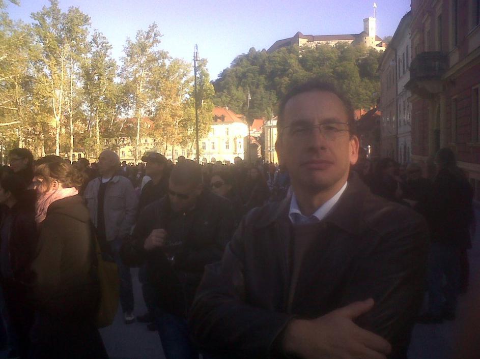 Žiga Turk na protestih 15o