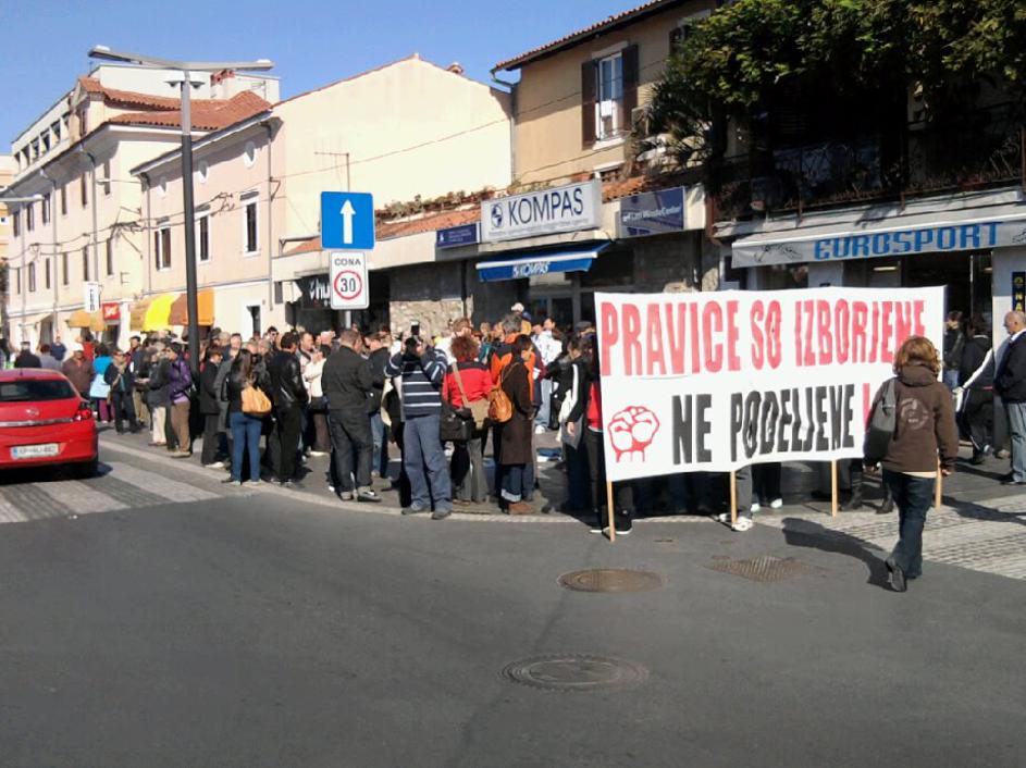 Protest proti kapitalizmu v Kopru.