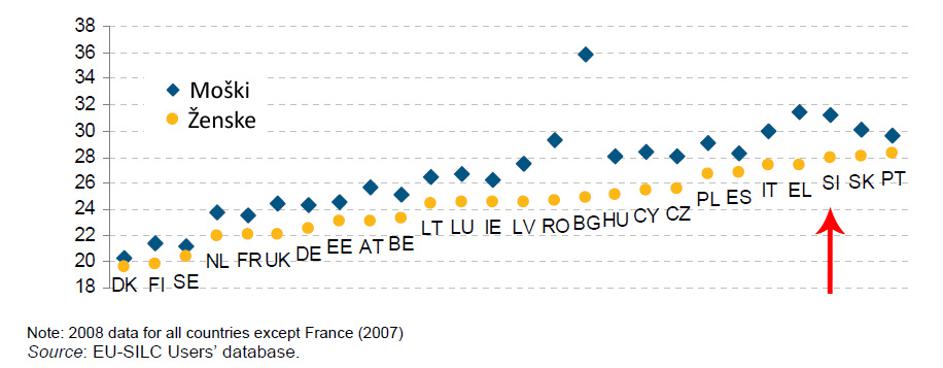 Starost, pri kateri se polovica posameznikov odseli od staršev. Podatki so za leto 2008. Za povečavo kliknite graf.