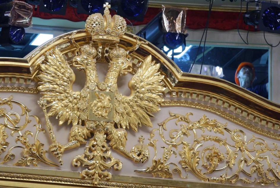 Bolšoj teaterS pročelja so odstranili sovjetski grb in ga nadomestili z dvoglavim orlom, državnim simbolom Rusije. Z gledališke zavese sta izginila tudi srp in kladivo. EPA
