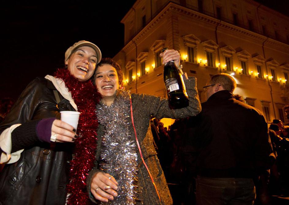 Italijani so na ulicah čakali na Berlusconijev odstop.