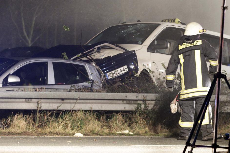 Verižno trčenje v Nemčiji. Verižno trčenje v Nemčiji. EPA Verižno trčenje v Nemčiji.
