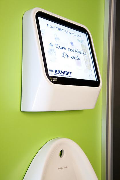Oglaševalsko-igralski vmesnik nad pisoarjem