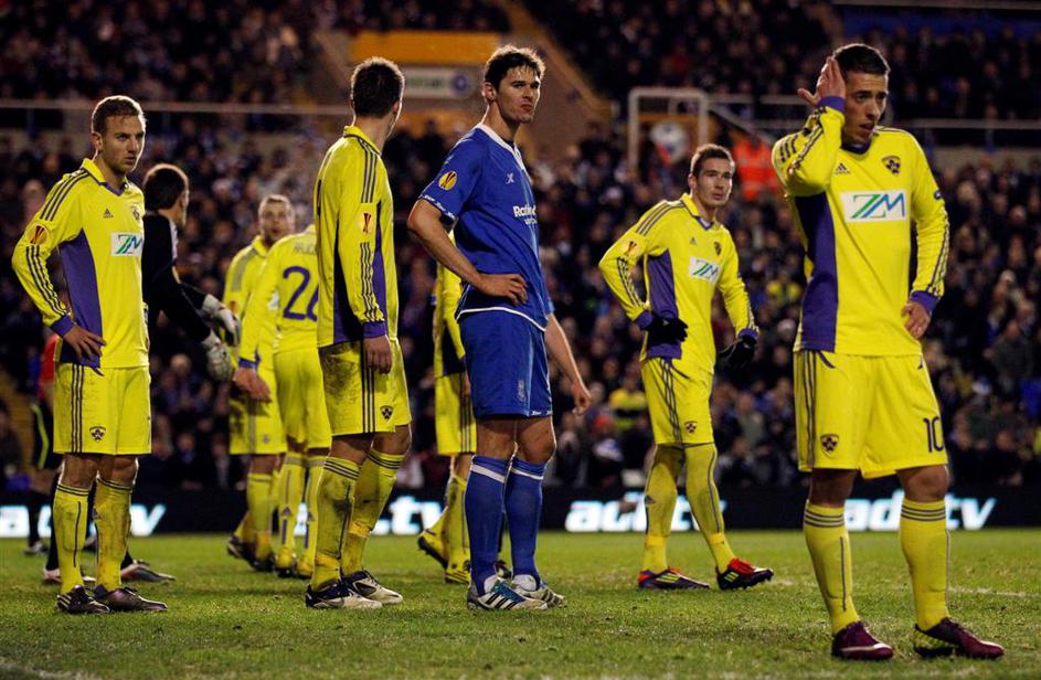 (Birmingham City-Maribor) Nikola Žigić obkrožen z vijolicami.