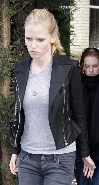 Lara Stone... s štirikaratnim diamantom z dodatnimi malimi diamantki skril v hamburger. Flynet