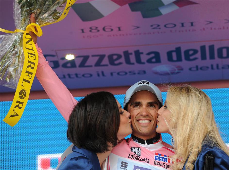 Contador ostaja v ronžatem. (Foto: EPA)29. maj - Z zadnjo etapo, kronometrom v Milanu, se konča letošnja izvedba kolesarske dirke po Italiji. Zmagovalec je drugič v karieri Španec Alberto Contador (Saxo Bank), ki brez težav ubrani veliko prednost v skupnem seštevku. EPA