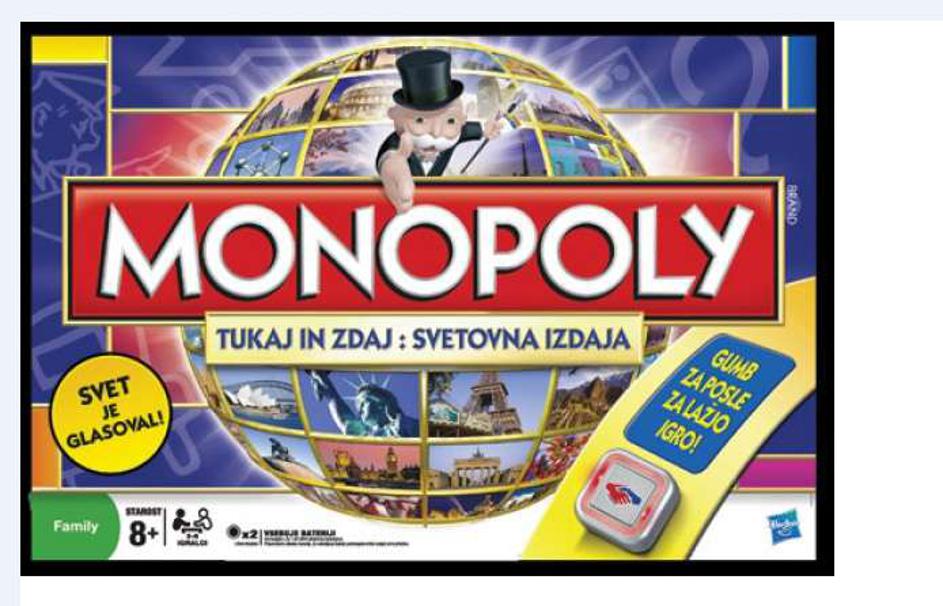Monopoly (Tukaj in zdaj), 29,99 evra. Od 8 let, od 3 do 4 igralci.
