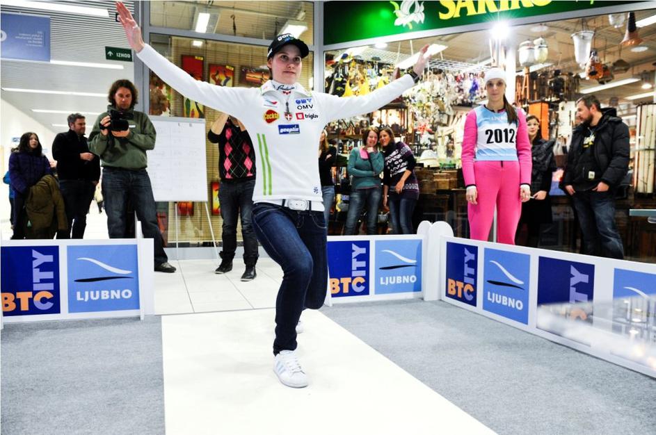 simulator skakalke polona bertoncelj V družbi hostes so se v skakanju preizkusili (od leve proti desni): igralka in televizijska voditeljica Tina Uršič, športna novinarka Polona Bertoncelj, športna novinarka Sara Oblak, najuspešnejša slovenska tekačica na smučeh Petra Majdič, Rene Mlekuž in smučarska skakalka Eva Logar Studio Bomba
