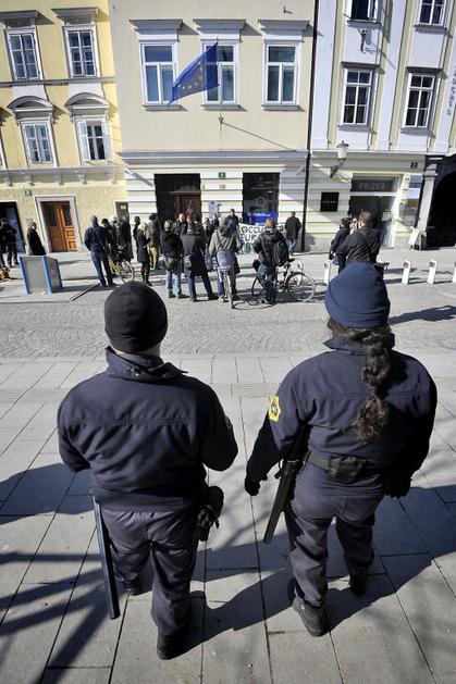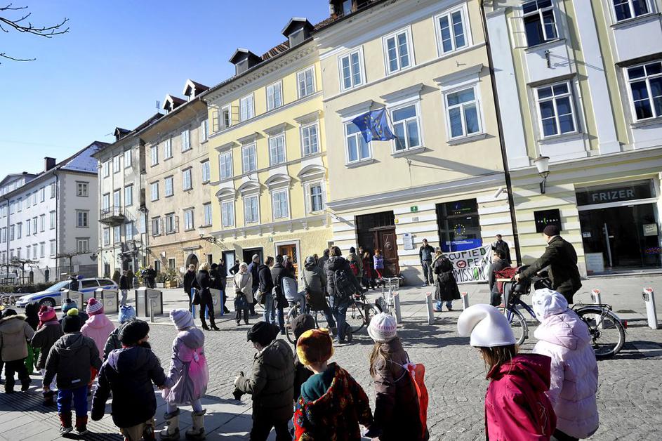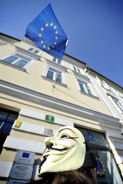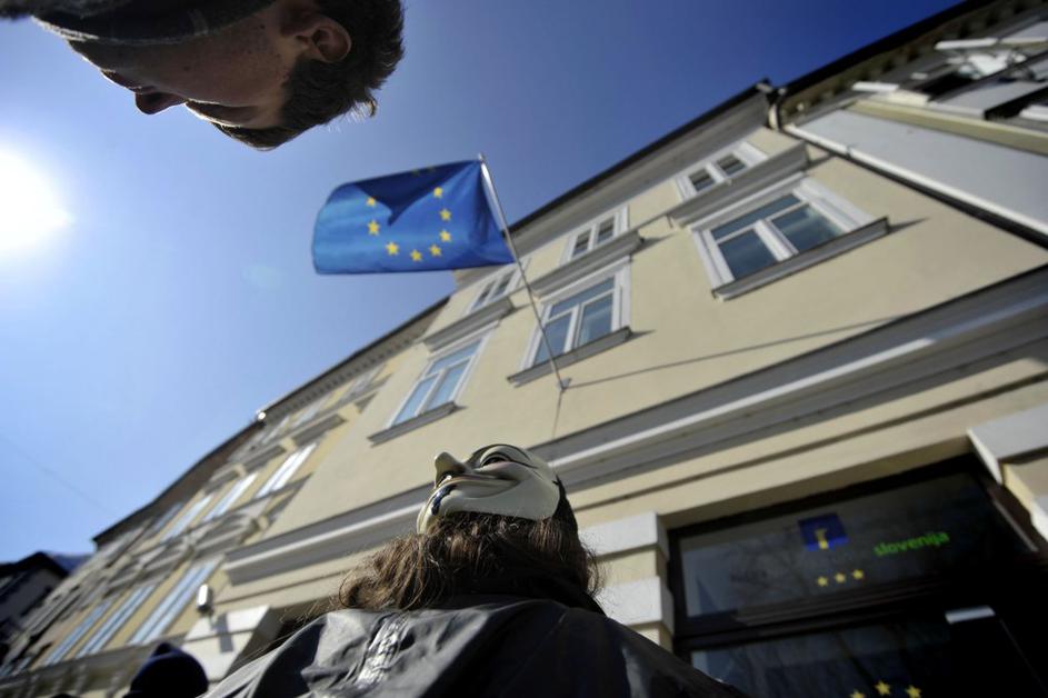 Protest proti Acti pred stavbo Evropske komisije v LJubljani