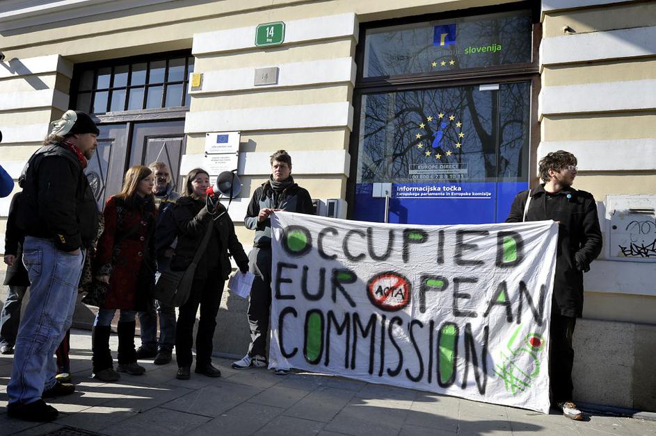 Protest proti Acti pred stavbo Evropske komisije v Ljubljani