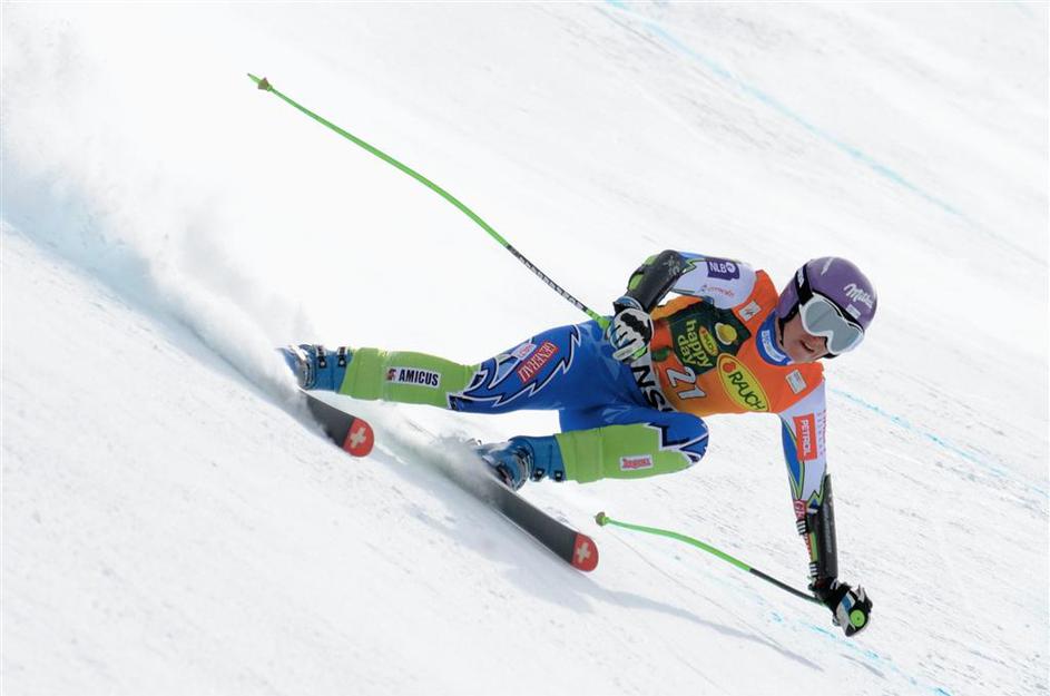 Tina Maze na nedeljskem superveleslalomu v Banskem.