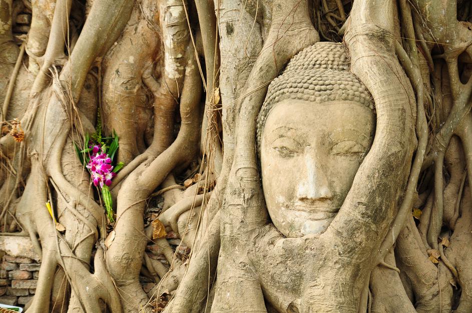 Tajska Znameniti kip Bude, ki je prepleten s koreninami, si lahko ogledate v Ayuthaiu. Shutterstock