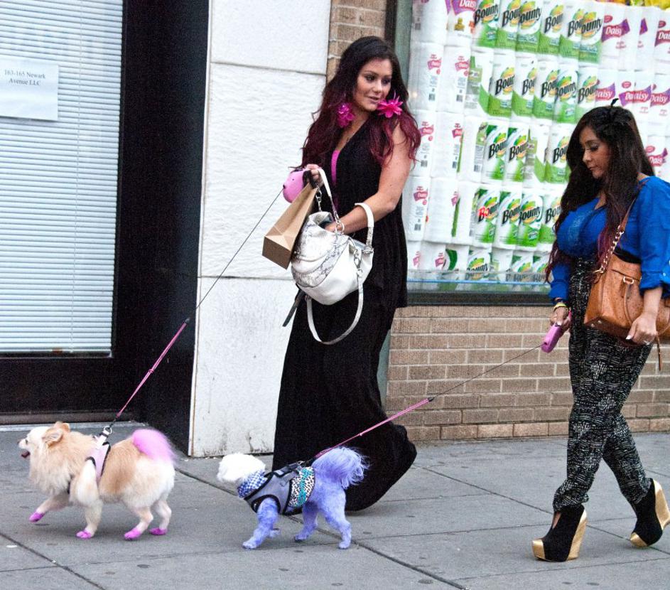 Nicole "Snooki" PolizziResničnostna zvezdnica Nicole "Snooki" Polizzi očitno res ne ve več, s čim bi še pritegnila pozornost, zato se je tokrat spravila kar na svojega pasjega ljubljenčka, ki ga je pobarvala v vijoličasto. Očitno se že pripravlja na veliko noč. FameFlynet