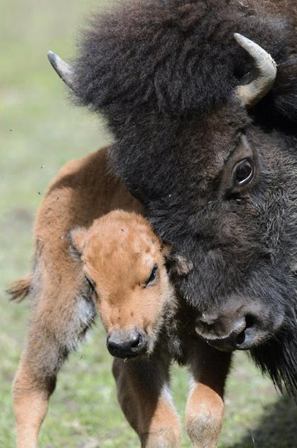 Le nekaj dni star mladiček ameriškega bizona se je pokazal obiskovalcem živalskega vrta de Servion v Švici.