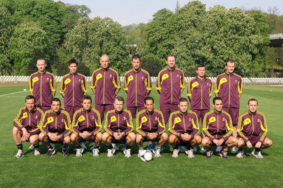 Enajsterica od 12 glavnih sodnikov na Euru 2012. Damir Skomina čepi drugi z desne.
