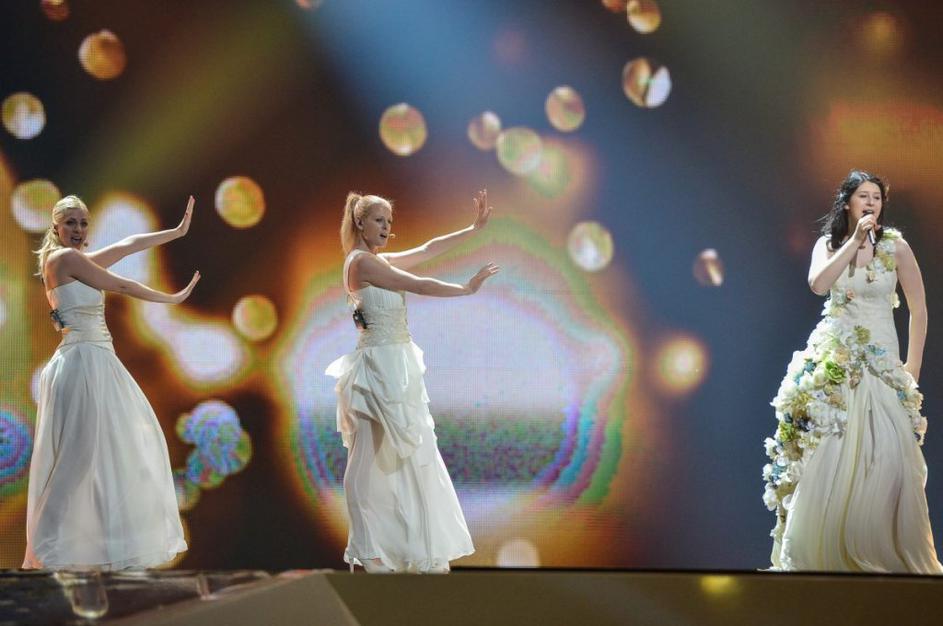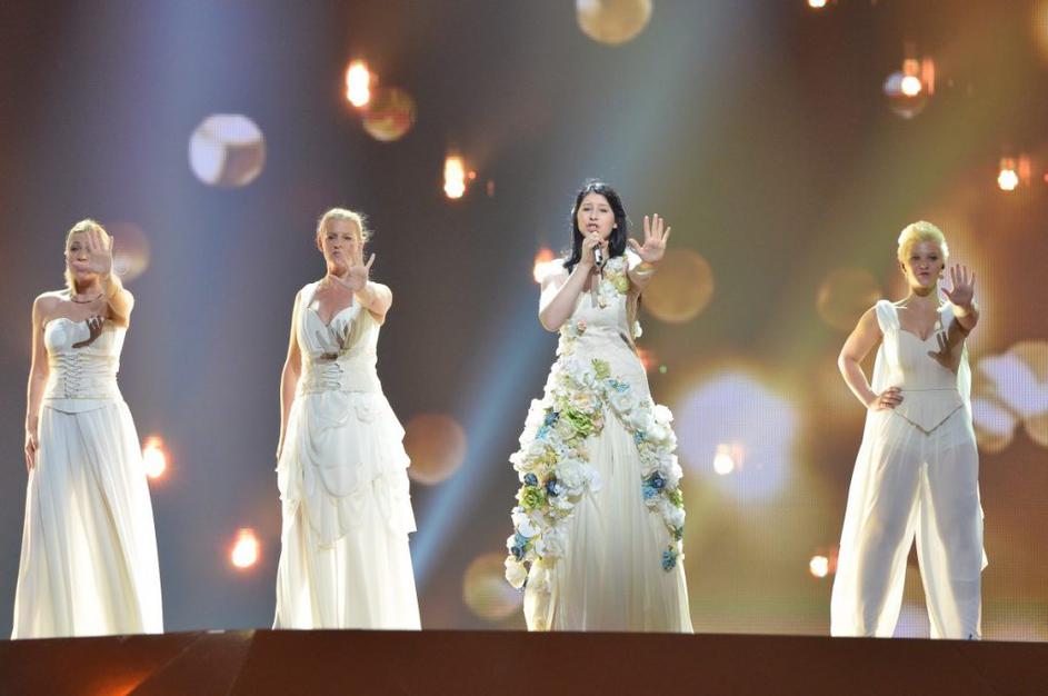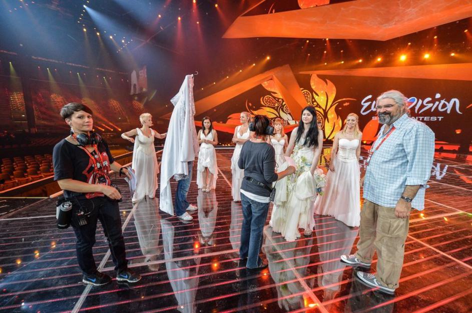 Eva na odru v "poročni obleki"