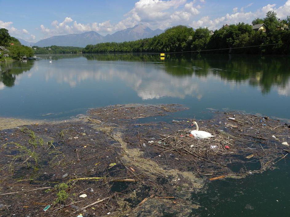 mavčiče, smeti, labodLabodji mladiči se bodo zaradi onesnaževalcev izvalili na kupu smeti. Egon Cokan