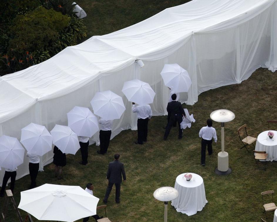 Slavni par se je sicer dobro zaščitil pred paparaci, ki pa jim je vseeno uspelo ujeti nekaj utrinkov z njune poroke ...