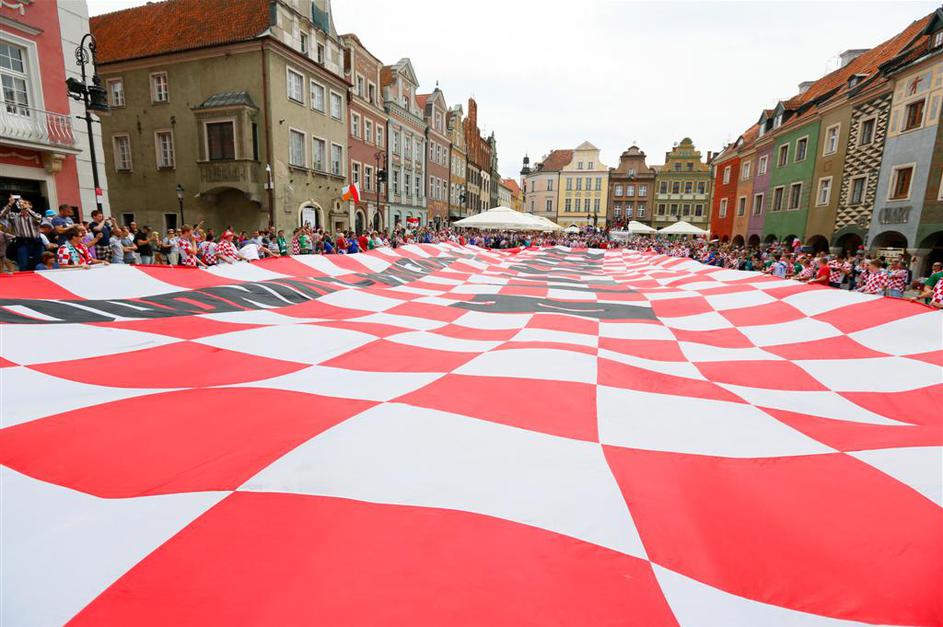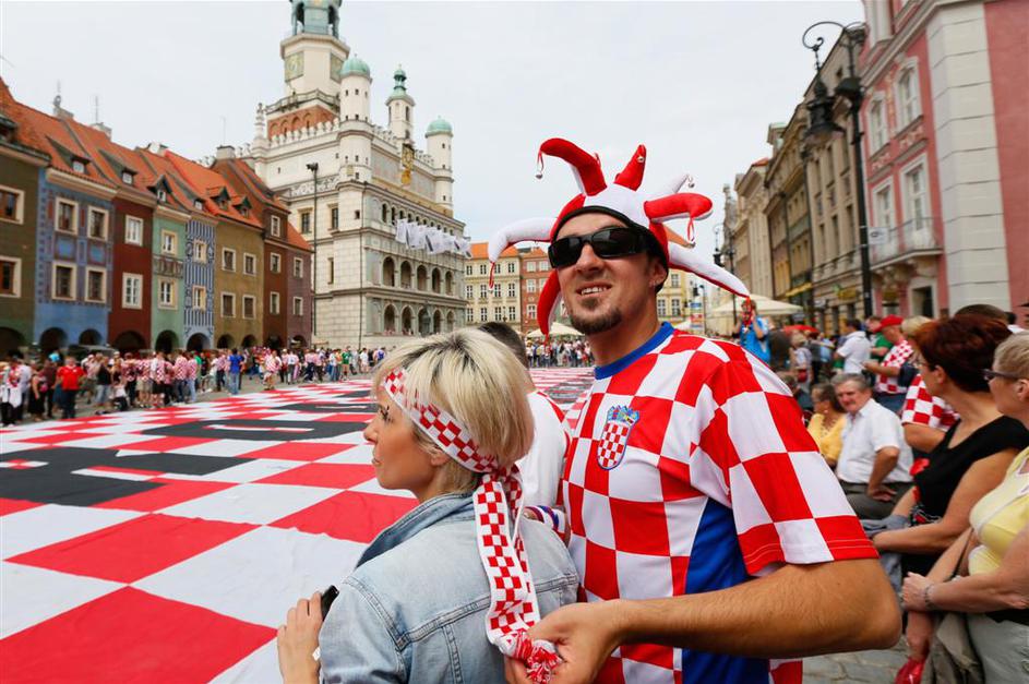 (Irska - Hrvaška) Hrvaški navijači so v Poznanu razvili ogromno zastavo.