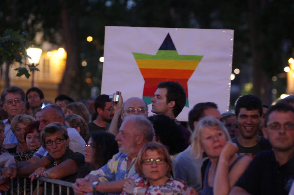 Zvezda miru je zasijala med državno proslavo na Kongresnem trgu.