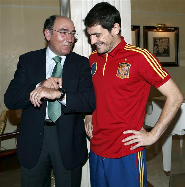 Španci (na fotografiji kapetan Iker Casillas) so se v Kijevu srečali s predsednikom podjetja Iberdrola Joséjem Ignaciem Sánchezom Galánom.