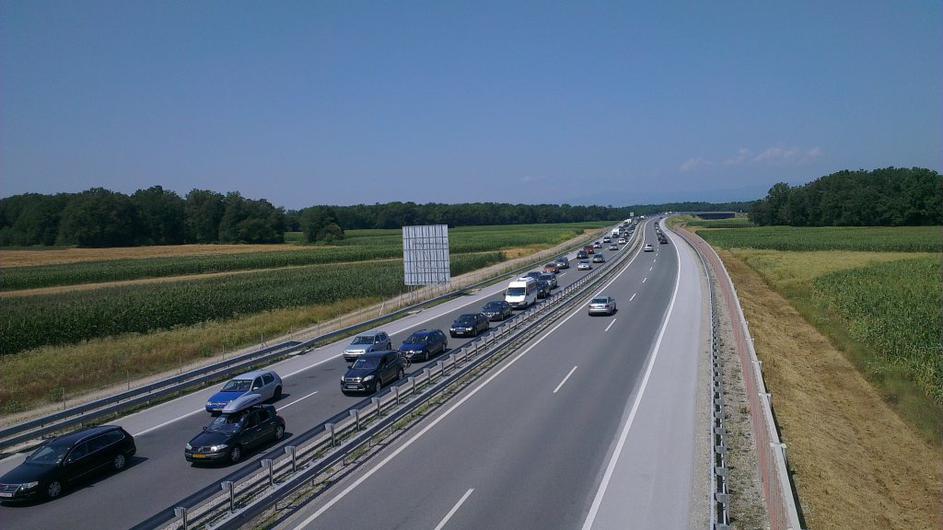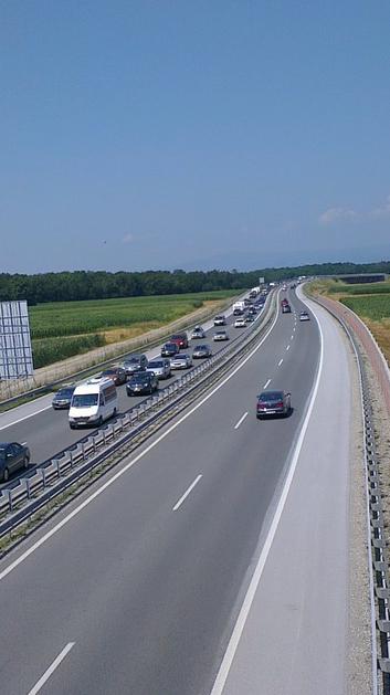 Bralec nam je poslal fotografije gneče na viaduktu Držanci v smeri proti mejnemu prehodu Gruškovje.