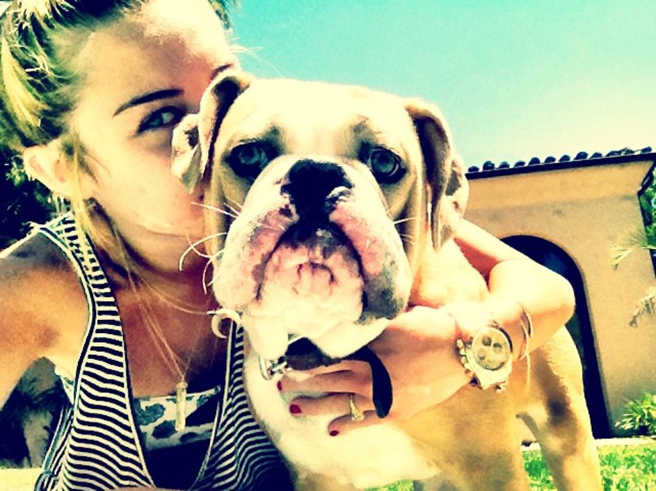 Miley Cyrus"Namenoma je pojedla moje diamante. Kakala jih je vse jutro,“ je razkrila Miley Cyrus apetit svoje psičke Ziggy po dragih kamnih. Twitter