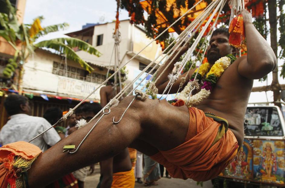 Na Šrilanki v čast bogovom viseli na kljukah.