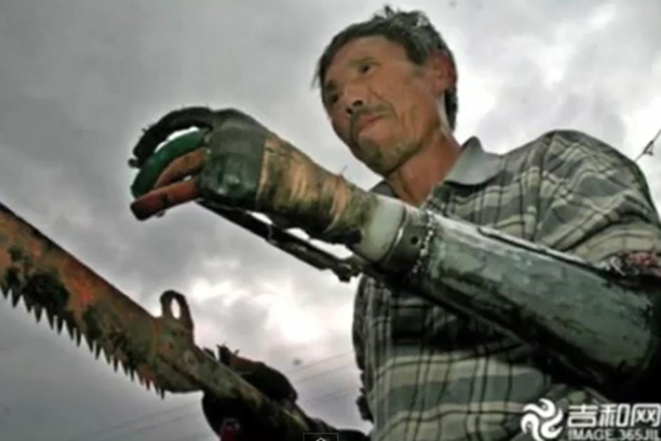 Kitajec si je sam izdelal roki iz odpadnih kovin.