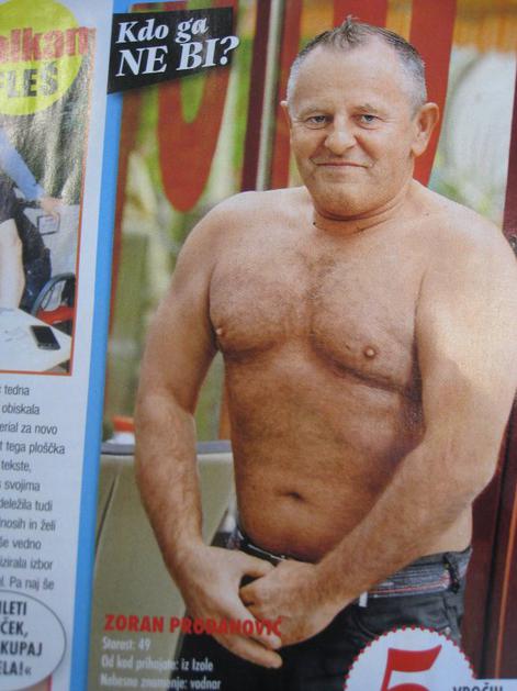 Zoran Prodanović Zoran Prodanović pri devetinštiridesetih pravi, da ima še vedno kaj pokazati in da to z veseljem tudi naredi: "Telo ni tako napačno, lahko si kaj obetam od njega (smeh). Ni me sram pokazati, tudi če je kaj narobe. Zakaj pa ne, nikoli nisem bil proti ženskemu ali moškemu razgaljanju." Nova/zurnal24.si Zoran Prodanović