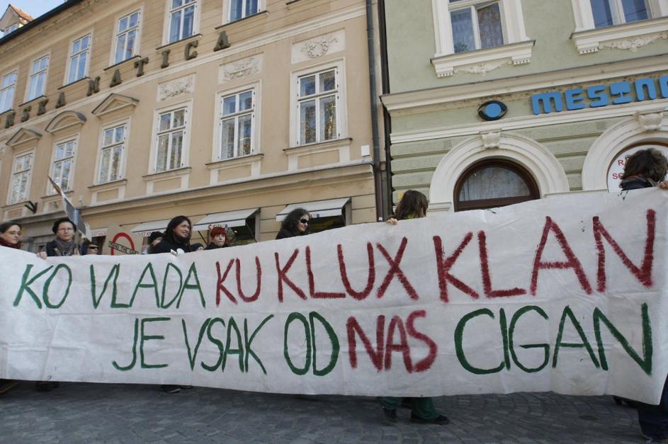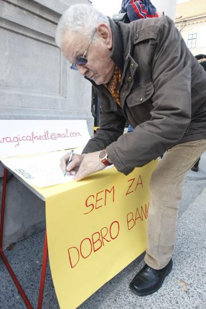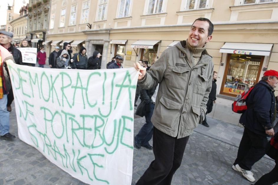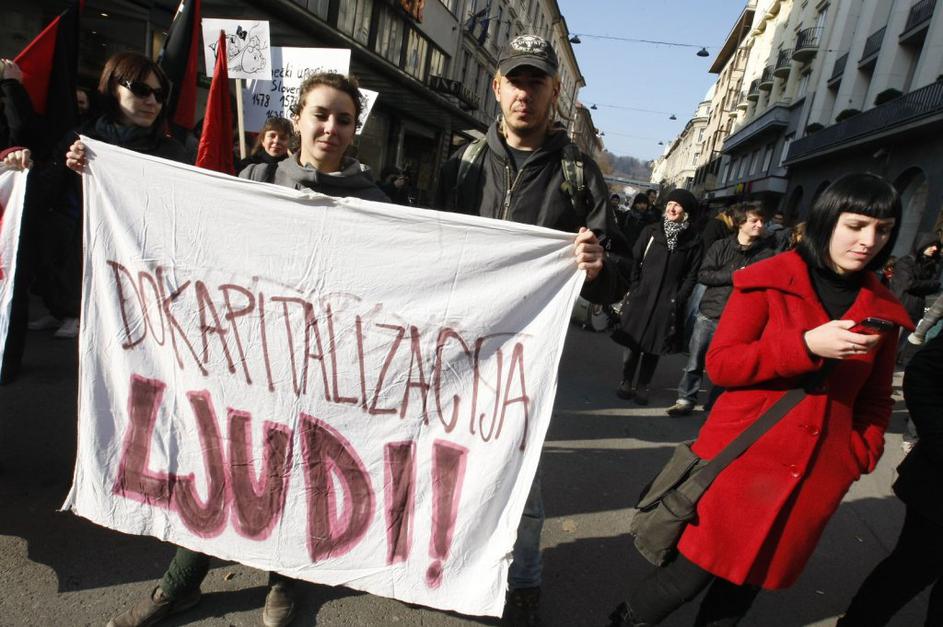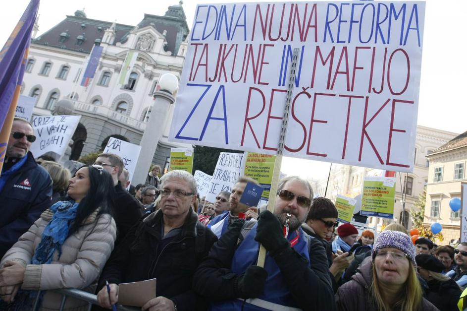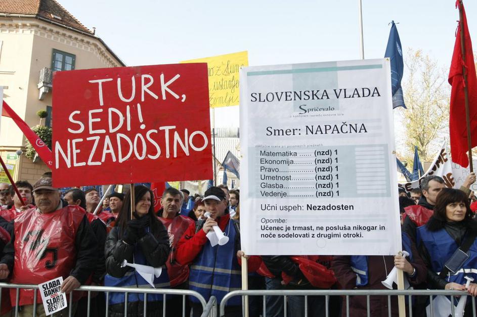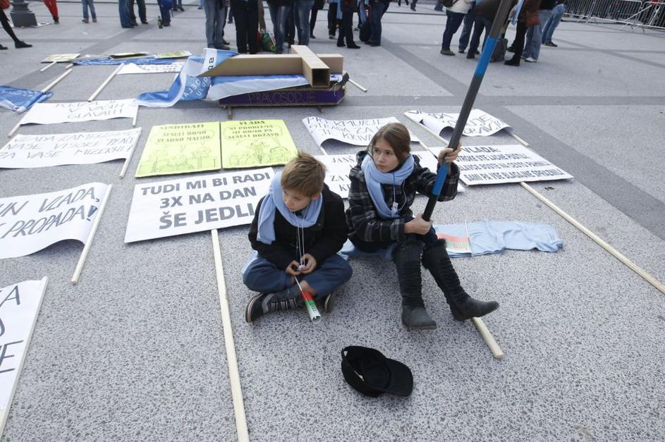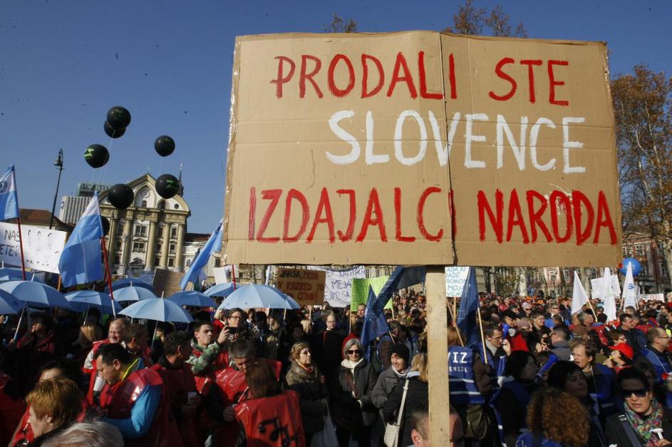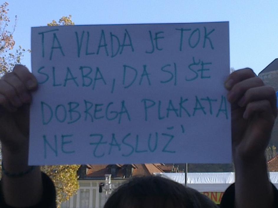 Protestniki so se potrudili in naredili kar nekaj izvirnih napisov. Ta je eden izmed njih.