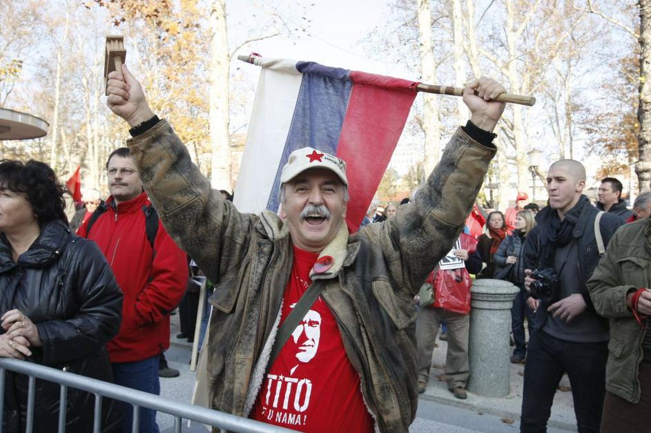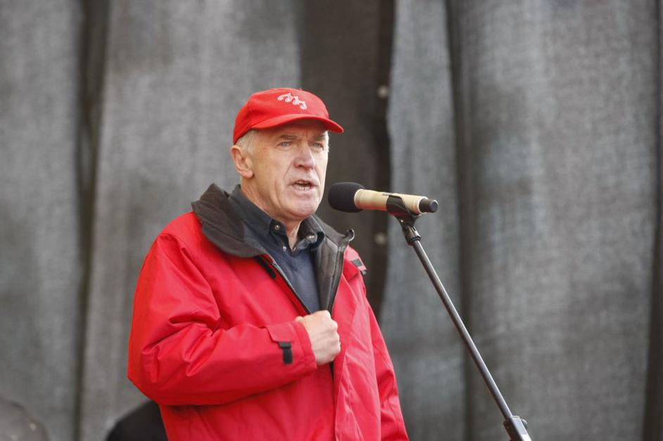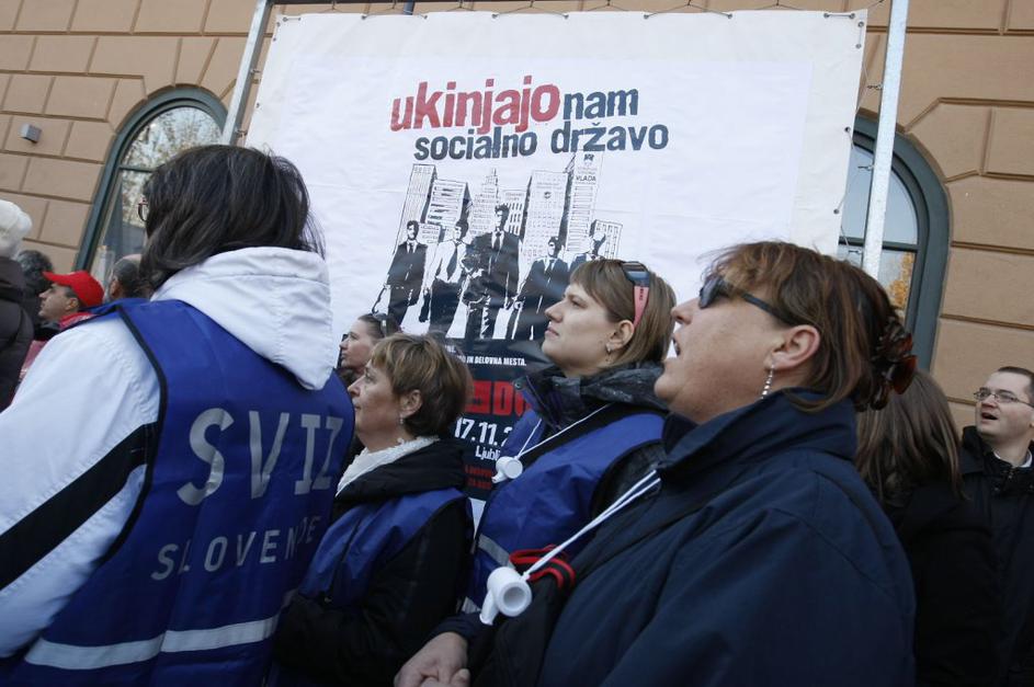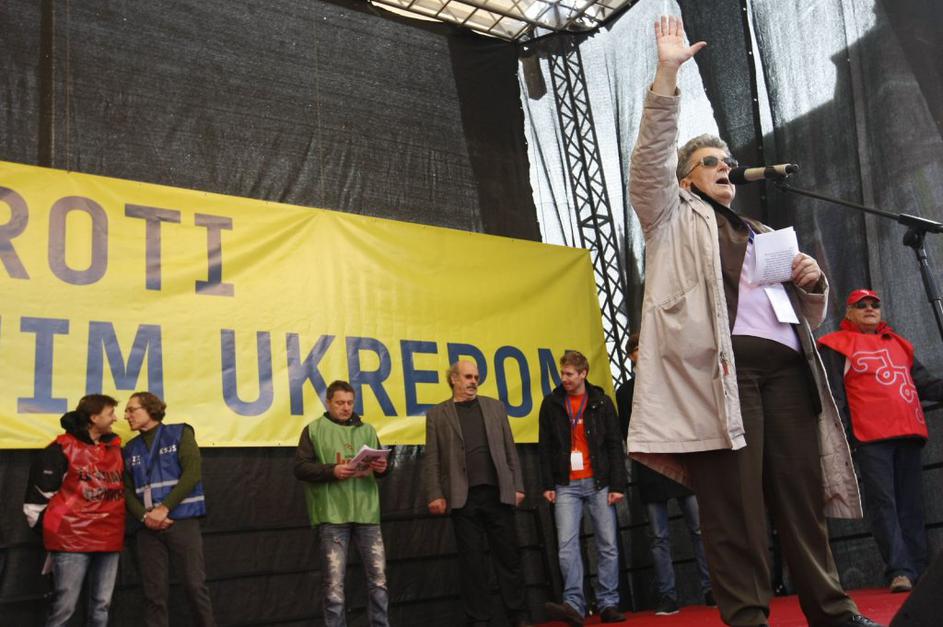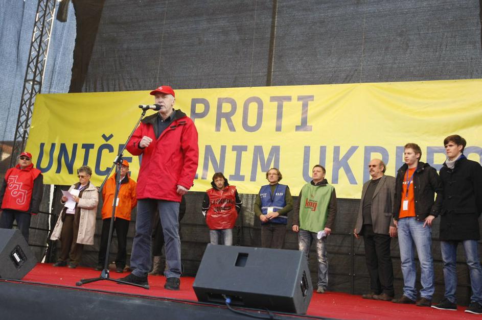Prvi je zbrane nagovoril Dušan Semolič iz ZSSS.
