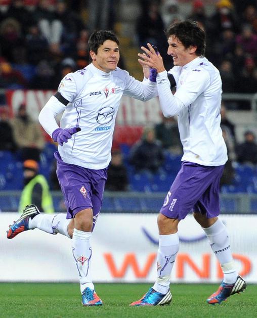 (AS Roma - Fiorentina) V 7. minuti je mrežo Fiorentine prvi zatresel Panagiotis Tachsidis (levo).