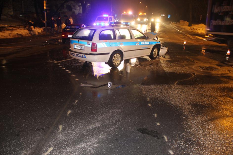 Voznik začetnik trčil v policijsko vozilo, trije poškodovani