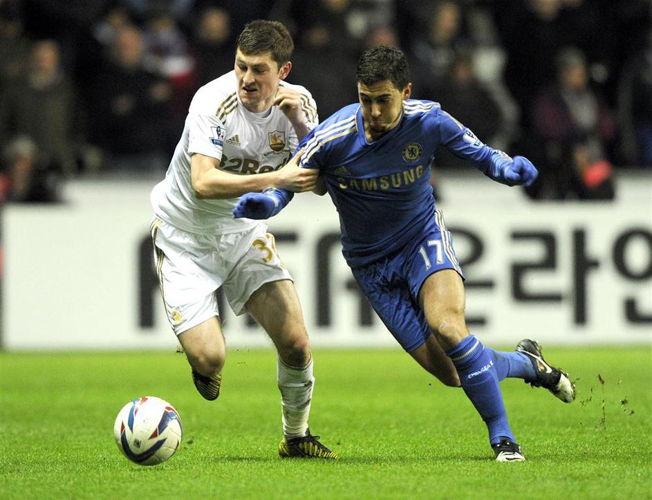 (Swansea City - Chelsea) Eden Hazard si je v Walesu privoščil veliko neumnost. Povsem nepotrebno je brcnil žogo, na kateri je ležal sicer resda precej neodzivni pobiralec žog. Reuters
