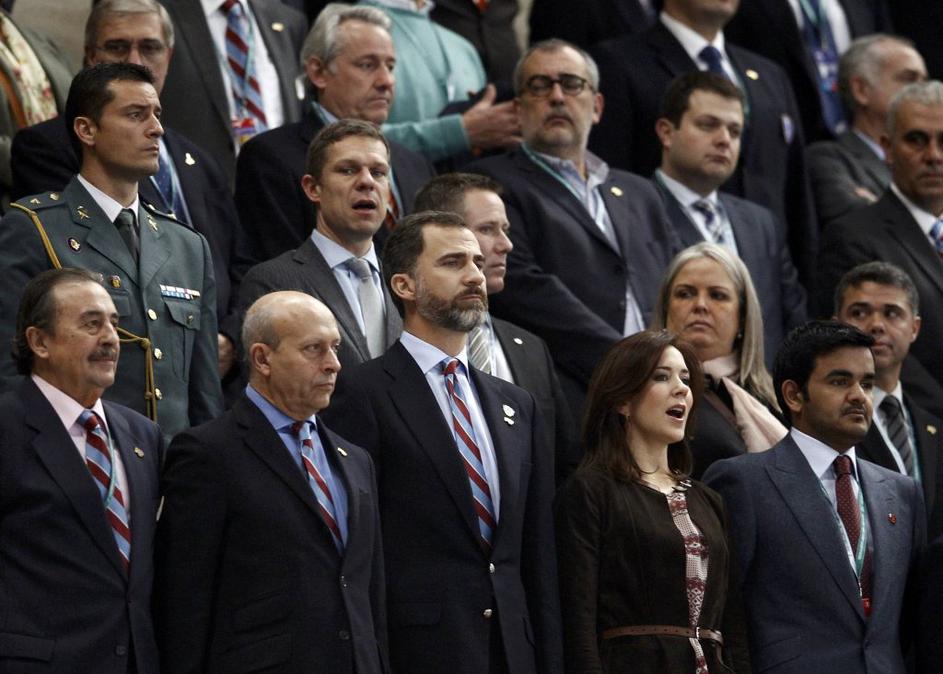 (Španija : Danska) Tekmo sta si ogledala španski princ Felipe (sredina) in danska princesa Mary (desno).